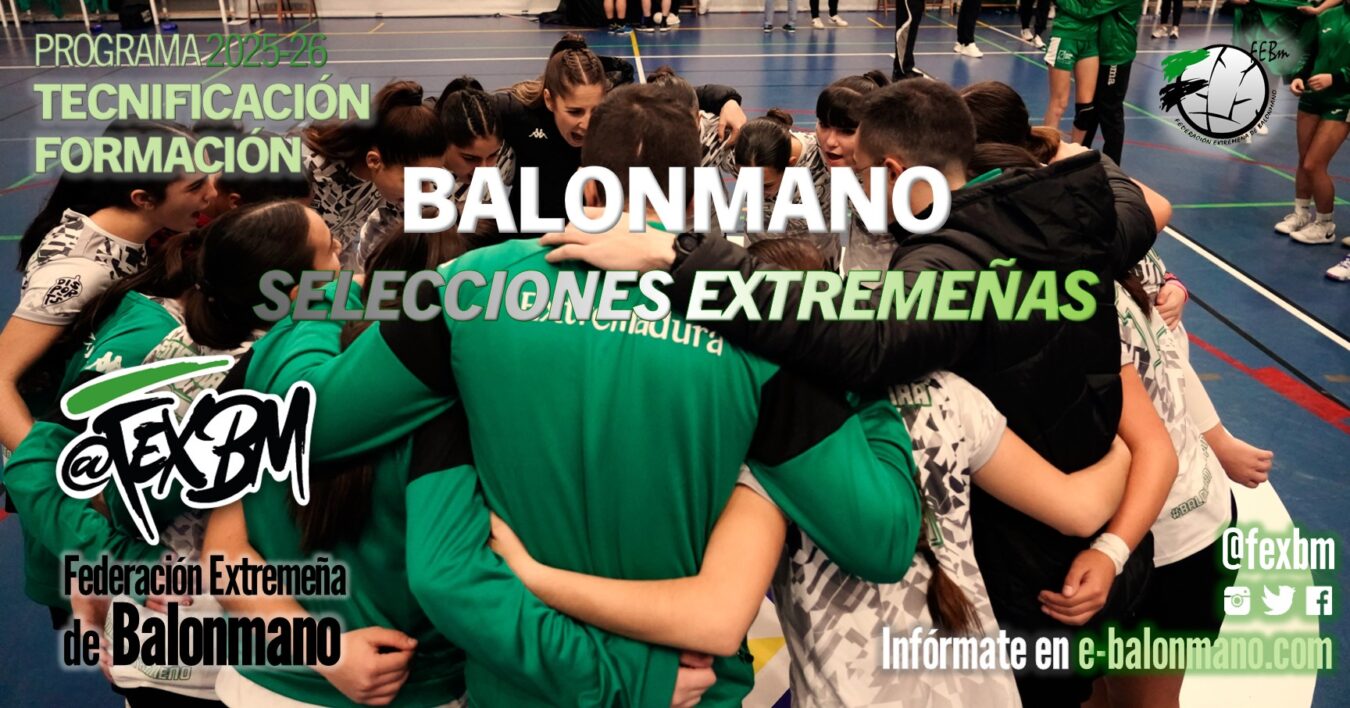 Dentro del Programa de Tecnificación y Formación de Jugadores, desde la Federación Extremeña de Balonmano inciamos las convocatorias de concentraciones para los deportistas de categorías Infantil Masculino y Femenino. En los detalles de las sesiones se concretan fechas, convocados y horas de entrenamiento. Convocatoria Infantil Fememino Sábado de 11:00 a 19:00 Convocatoria Infantil Masculino domingo